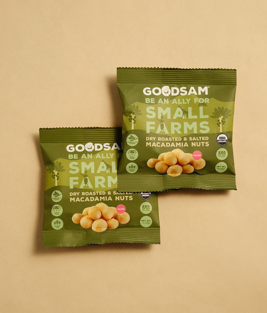 Our direct trade program is exactly what it sounds like. We form deep partnerships with our Small Farms partners and pay them directly without any middlemen or third party certifiers involved. As a result our farm partners are paid a respectable wage. GoodSAM also takes 1% of our topline sales and puts it directly back into the farm communities. We do this by collaborating to solve relevant problems and create lasting impact. You can find out more about our efforts through our Impact Report.