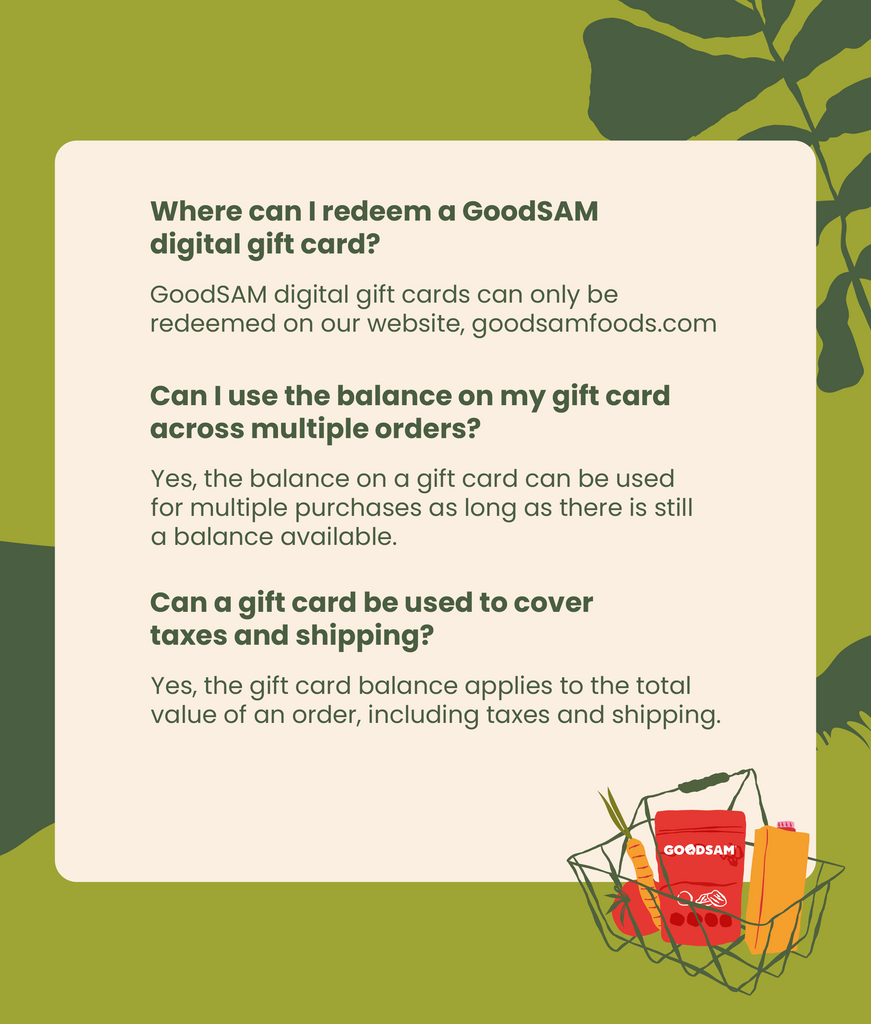 Looking to surprise someone with a special treat? Want to thank a teacher or show appreciation to someone special with a gift that tastes great AND is good for the planet? We’re excited to introduce GoodSAM gift cards for every occasion!